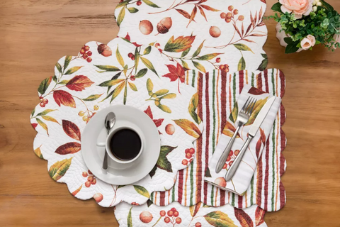 Coordinating table top pieces such as napkins and placemats sold separately.