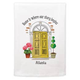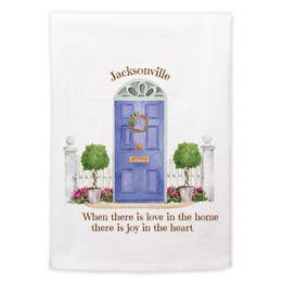Our original artwork, colorful collage letter license plate design with city, town, or state name, hand printed onto our kitchen towels make perfect gifts for any occasion. (Los Altos, CA). The traditional flour sack towels are washed twice and then ironed for that super soft feel - Huck towels are beautifully woven in a "huck" pattern, providing long-lasting use.