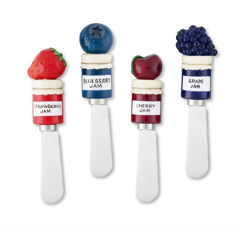 Our Set of 4 Cheese Spreaders provides an easy and fun way to spread your favorite cheese, jelly, jams, etc. The spreaders come with a beautiful resin handle and four unique and creative designs. Perfect for adding a personal touch to your next gathering! Each set comes in its own gift box.