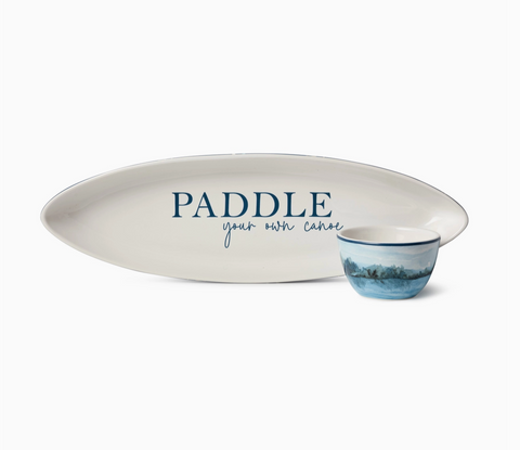 Elevate your entertaining with the charming Wake At The Lake 3-D Canoe Chip and Dip Set, a two-piece serving solution designed for lakeside-inspired gatherings. The set includes a stunning canoe-shaped tray paired with a coordinating dip bowl.