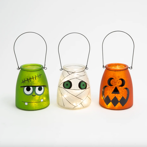 Halloween 5.9"H B/O Lighted Glass Halloween Lantern, 3 Asst