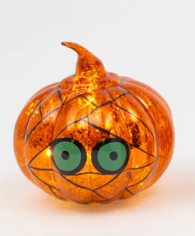 Halloween 6.7"H B/O Lighted Mercury Glass Halloween Pumpkin, 3 Asst
